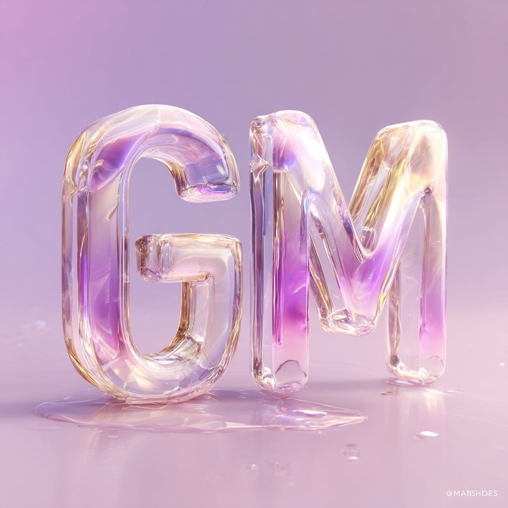 Icon design of the letter "GM" made of original crystal material, featuring gold and light purple gradients, front view, studio lighting, solid background. --ar 1:1 --profile jku8cdu --v 7