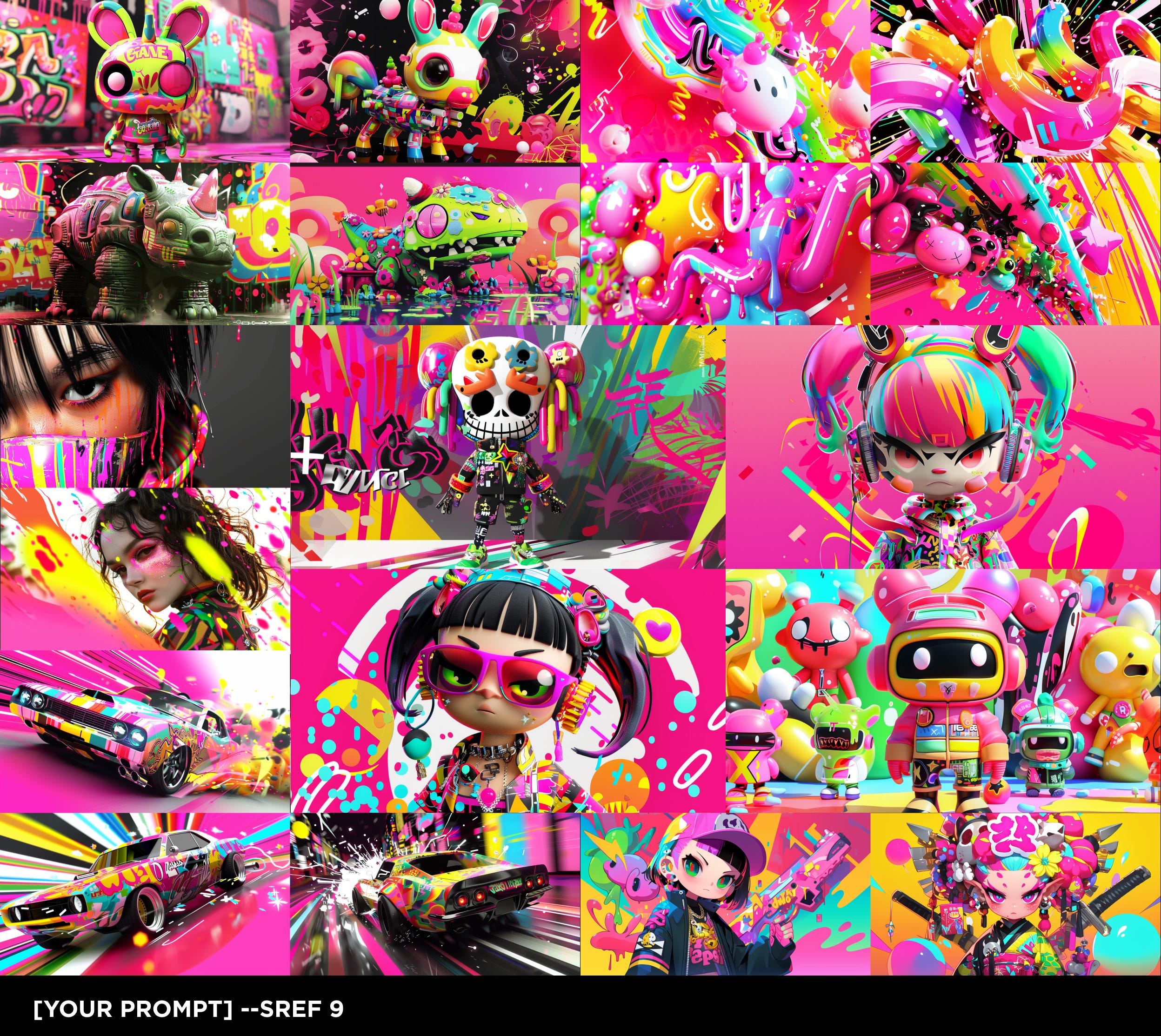 To use it, simply add the parameter --sref 9 at the end of your text prompt: