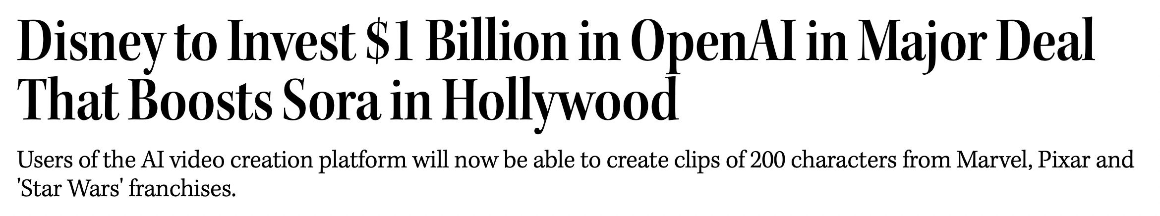 Under this landmark deal, Disney is investing an estimated $1 billion in OpenAI. In exchange, they are granting a limited, time-bound license (in case they regret it) to use their crown jewels, Mickey, Marvel, Pixar, and Star Wars, to generate images and videos on platforms like Sora and GPT Images.