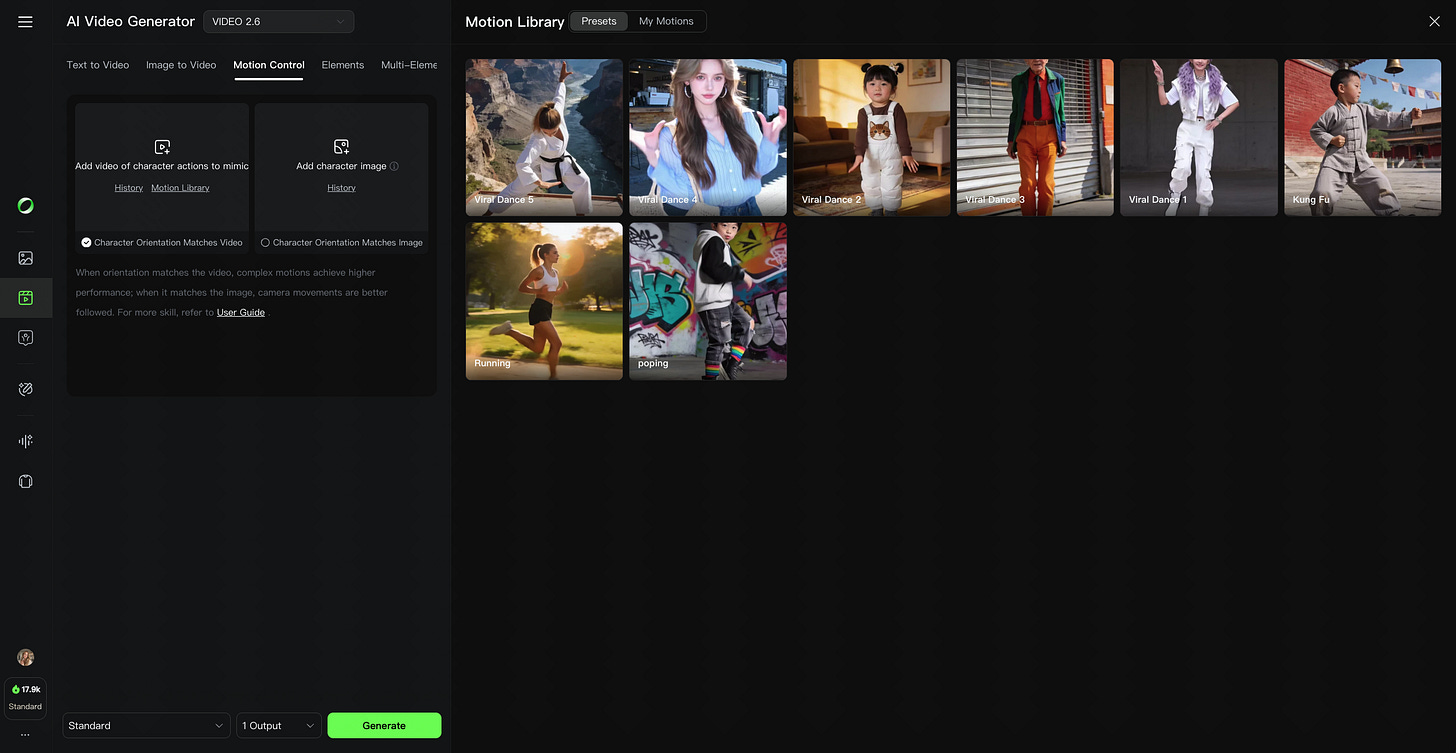 Select Your “Actor” (Motion Reference): Upload a video of the action you want to mimic. You can use your own footage (perfect for specific gestures) or choose from Kling’s Motion Library.