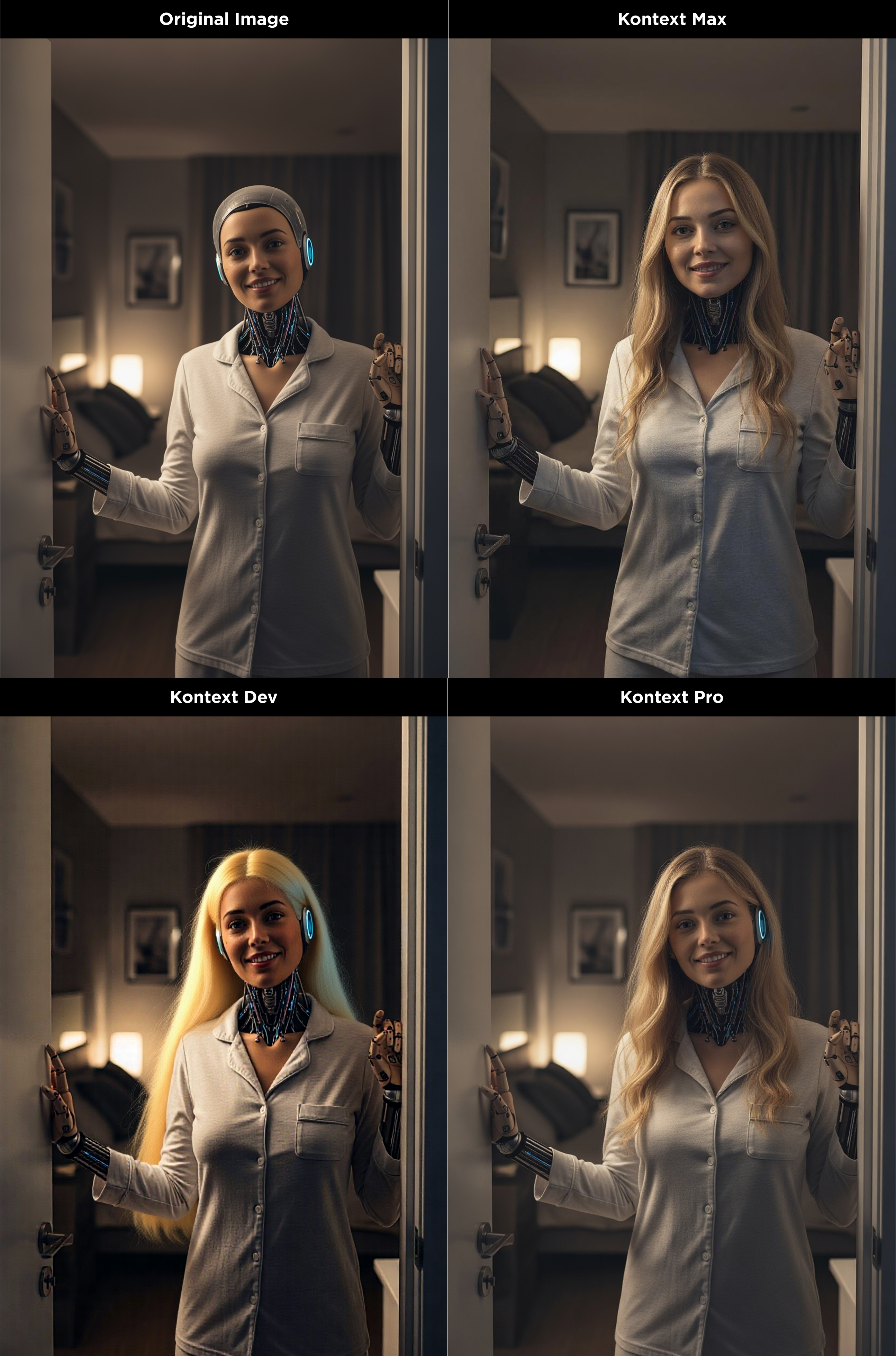 Say goodbye to the days of “just redraw the whole thing” image edits. FLUX.1 Kontext, the latest image editing model family from Black Forest Labs, is designed to bring precision, speed, and sanity to visual workflows. It lets you make targeted edits, like “make the sky sunset orange” or “change the logo text to ‘BFL’”, without breaking the rest of your image.