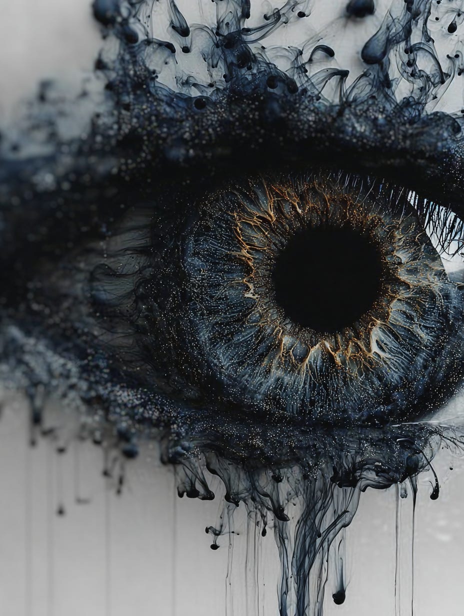 Midjourney Prompt: Black ink in clear water, the black ink forms the shape of an eye. --chaos 5 --ar 3:4 --stylize 750