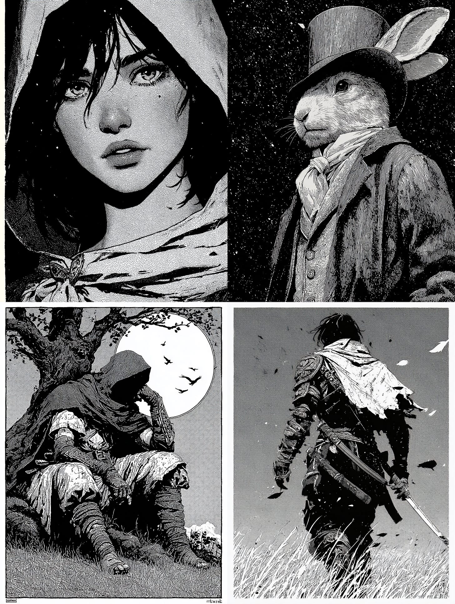 Expressive comic style black and white art