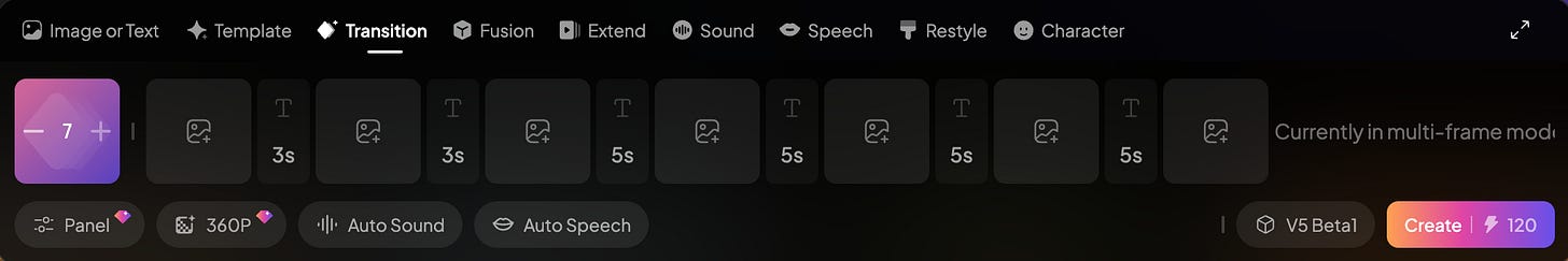 You can add up to seven distinct frames, creating a visual storyboard for your entire shot right inside the generator.